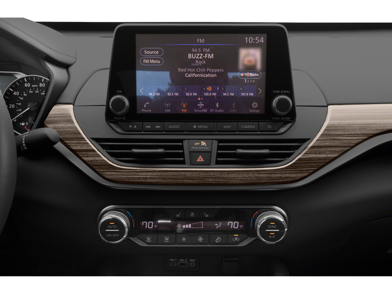 - Radio: AM/FM Audio System -inc: RDS, MP3, aux-in, 6 speakers, NissanConnect featuring Apple CarPlay, Android Auto, 8" color display w/multi-touch control, 1 front illuminated USB port (type-C) for compatible devices, SiriusXM radio w/advanced audio features, Bluetooth hands-free phone system, streaming audio via Bluetooth, hands-free text messaging assistant, 2 rear illuminated USB ports (type-A, 1 type-C) for compatible devices, Siri Eyes Free/Google Assistant voice recognition