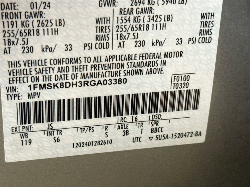 - Tires: P255/65R18 AS BSW -inc: mini spare